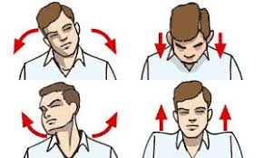 - Girar la cabeza lentamente hacia la derecha e izquierda, hacia delante y hacia atrás y hacia los hombros alternativamente 10 veces.